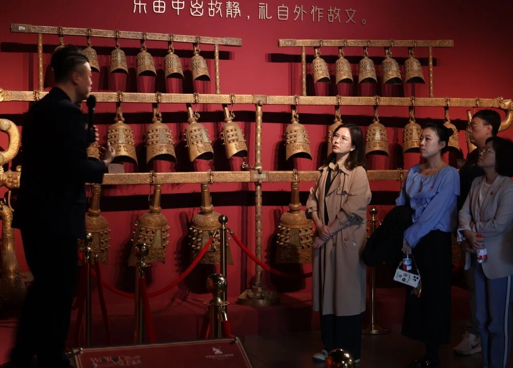 抵达博物馆后,在讲解员带领下大家依次参观音乐历史长廊,欣赏世界珍贵的音乐藏品。从曾侯乙编钟到百年留声机,中西方乐器交相辉映,党员们在沉浸式体验中感悟礼乐文明的传承与世界音乐的时代回响。