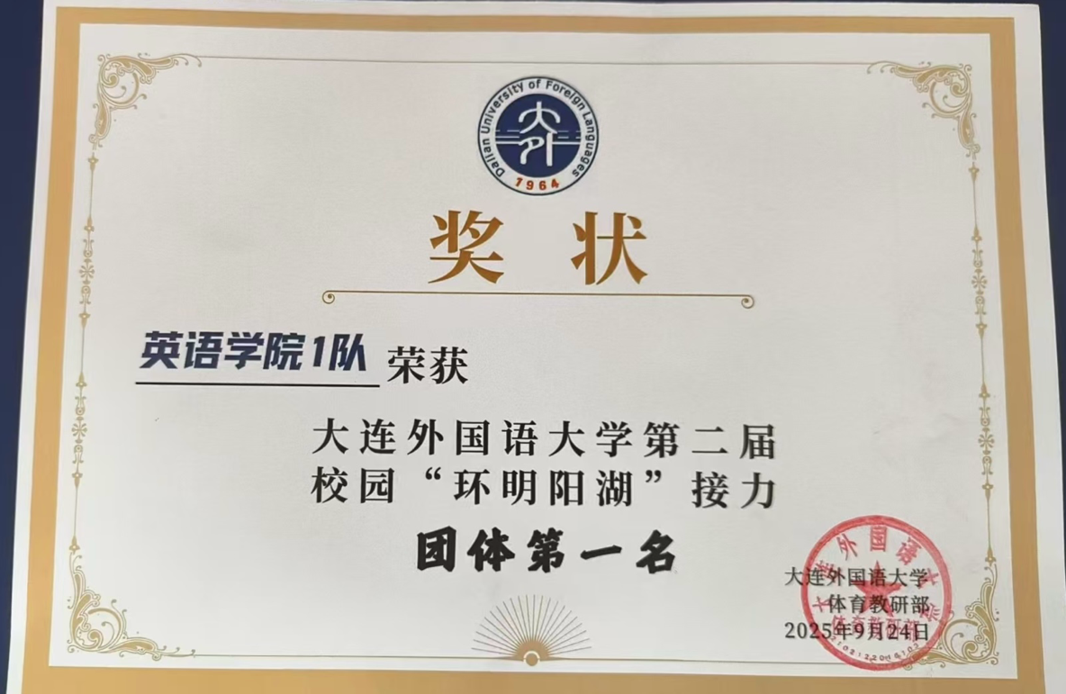 为积极响应学校全面育人号召,大连外国语大学于2025年9月24日在明阳湖畔成功举办第二届校园“环明阳湖”接力比赛。英院学子凭借飒爽的英姿与昂扬的斗志,勇夺本届比赛第一名,生动诠释了“无体育,不英院”的精神内涵。