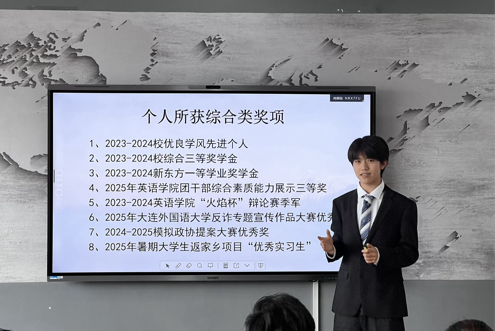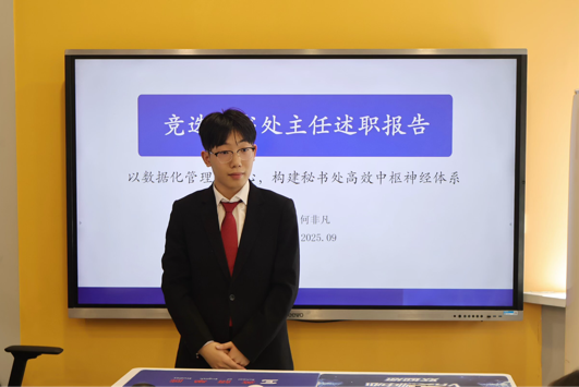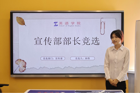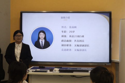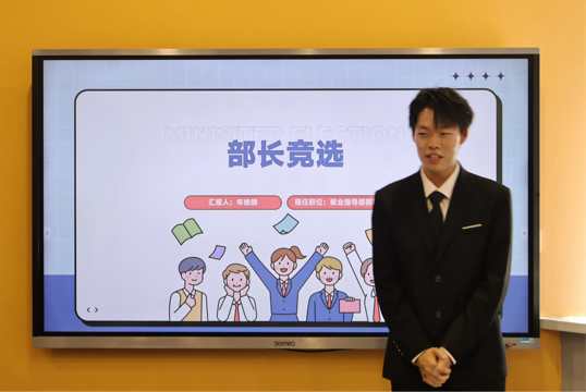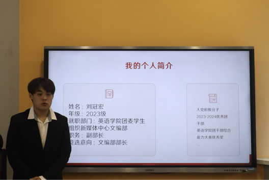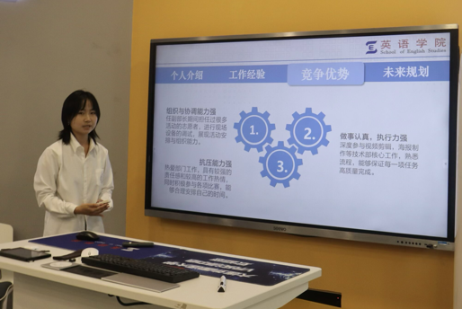 9月4日,英语学院团委学生组织部长级换届选举面试在励业楼VR教室如期召开。候选人围绕个人基本情况、过往工作履历、自身竞争优势以及未来工作规划等方面进行汇报展示,他们以务实的态度和饱满的热情,阐述了对学生工作的深刻理解与独特见解。面对评委的针对性提问,候选人们沉着思考、从容应答,以切实的举措展现出对学生工作的热情和美好向往。