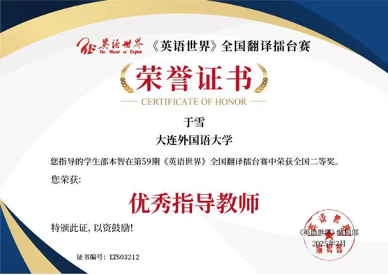 近年来,英语辩论俱乐部成员征战四方,取得了优异的成绩。俱乐部成员曾荣获第27届“外研社•国才杯”全国大学生英语辩论赛全国银奖、第24届“外研社•国才杯”全国大学生英语辩论赛全国铜奖、2024中国大学生英语辩论赛CUDC全国二等奖、第26届“外研社•国才杯”全国大学生英语辩论赛辽宁赛区二等奖等多项荣誉。