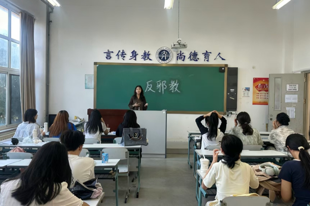 为深入推进校园反邪教警示教育,引导同学们认清邪教本质、增强防范意识,英语学院组织本科生、研究生各班开展反邪教主题班会,实现反邪教教育全面覆盖,为构建安全、健康、文明的校园生态奠定坚实基础。