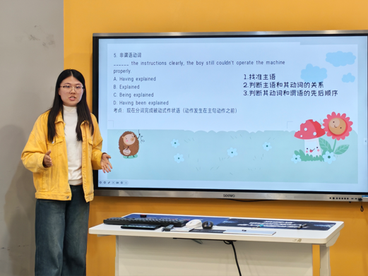 面试现场,竞选者逻辑清晰,表达流畅,凭借流利的英语表达和精心的PPT展示,带来了出色的课堂试讲。在问答环节,竞选者们与评委间的互动自然真诚,深入阐述了对送教助学的理解。