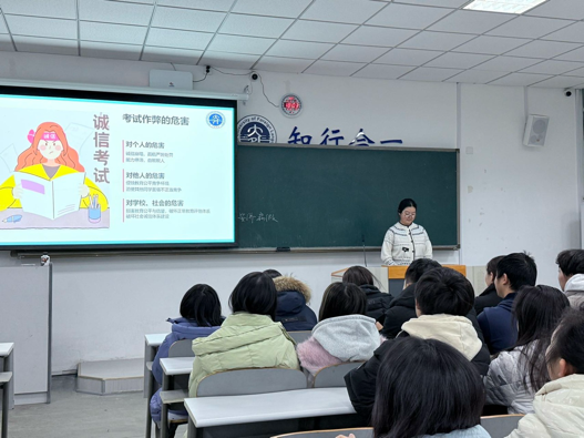 2025级各班召开了以安全教育与诚信考试为主题的班会。各班班长主要从人身安全与防范网络诈骗等多个安全问题进行了讲解。同时,他们详细解读了考试违纪作弊的情形及相应处罚措施,通过真实案例让同学们深刻认识到作弊行为对个人学业、诚信档案的严重影响。