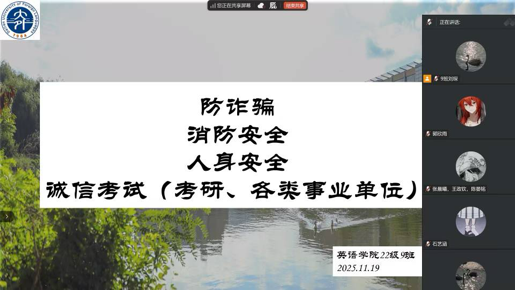 此次系列会议的召开,不仅切实增强了英语学院全体学生的安全防范意识,还进一步筑牢了诚信考试的思想防线。同学们纷纷表示,将时刻绷紧安全弦,坚守诚信底线,共同营造安全、和谐、诚信的校园环境。