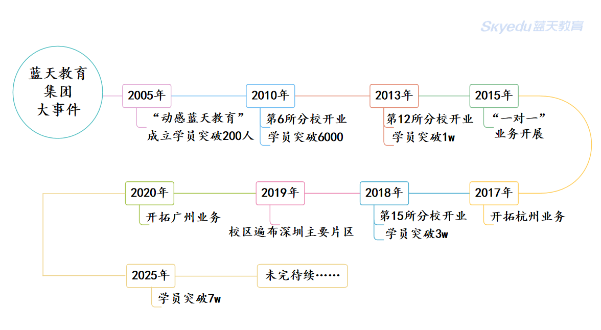 蓝天教育集团创办于2005年,总部坐落于深圳福田区,至今已在深圳深耕20多年,是华南大湾区知名的内容产品研发、学科培训教育、科创素质教育、 成长感知服务的K12品牌。
