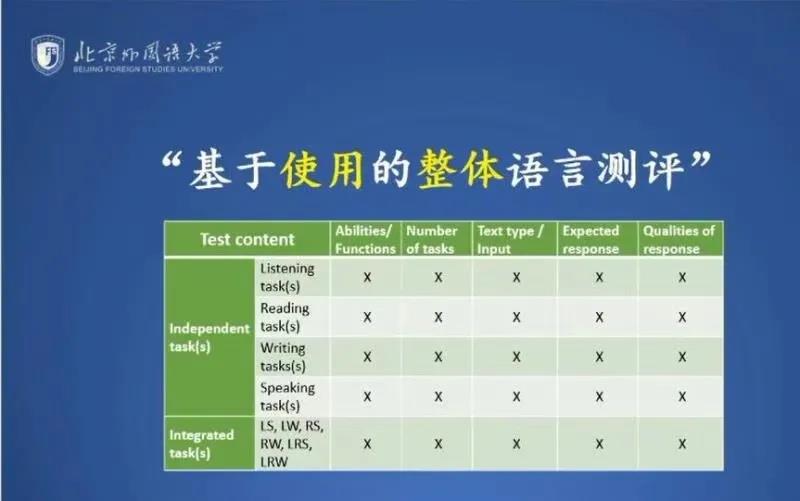 本次讲座从语言使用、语言能力和语言使用任务三个概念展开,全面深入地介绍了基于使用的整体语言测试与评价。首先,韩教授阐释了语言使用在语言测试中的意义与作用,并从外语教学的角度把语言能力界定为“理解和表达意义的能力”。谈及语言使用任务时,韩教授指出“听、说、读、写”不仅是技能本身,更是语言运用的活动,建议在测试时采用综合性语言使用任务。同时,韩教授还归纳了综合性语言使用任务的三个典型特征,即情景性、目标导向与调动语言者知识和策略的积极性。最后,韩教授就“语言测评与教学实践相结合”提出了针对性的建议,强调广大教师应改变传统的测评观,要将“测评”与“促学”相结合,为语言测评付诸教育教学实践提供新思路。
