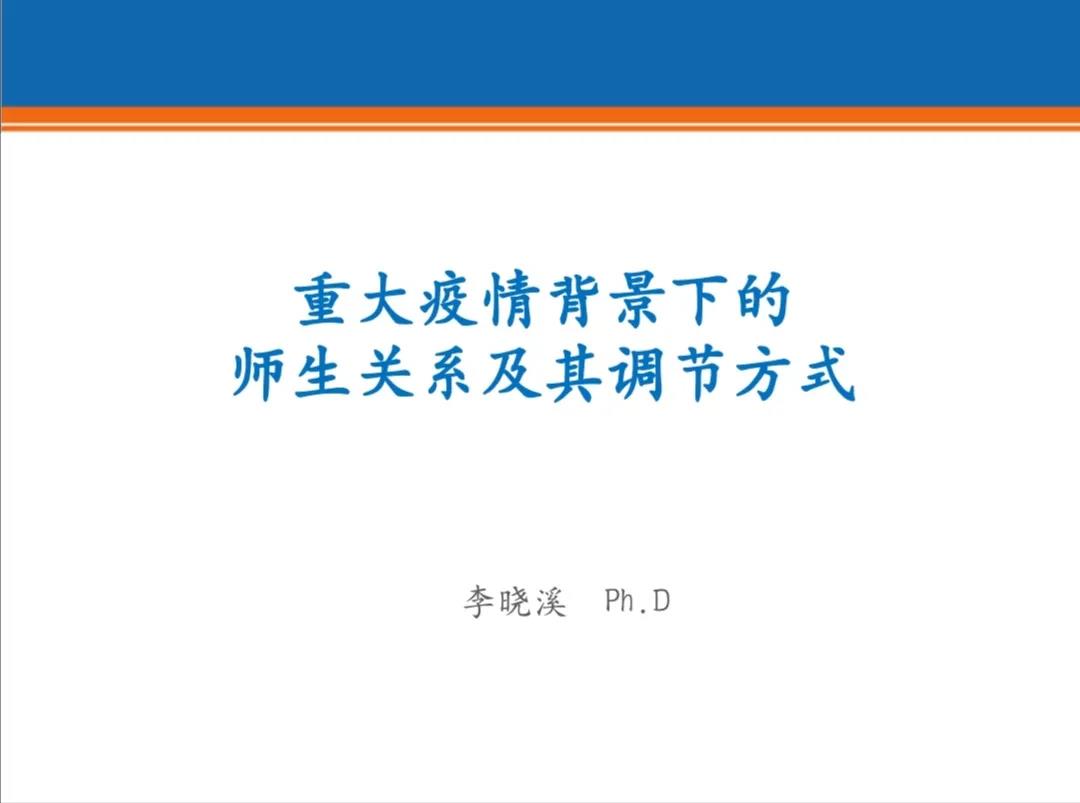 李晓溪博士首先介绍了人们在疫情背景下经历警戒反应期、抵抗期、疲劳期的持续性应激的发展过程。随后,李晓溪博士向与会教师详细描述了重压之下教师的心理表现,并通过分析研究生自杀身亡等案例揭示出社会上现存的师生关系异化现象。基于背景分析,李晓溪博士继而从学生、教师、 师生交往三个维度对师生关系异化的原因进行了解读。李晓溪博士表示导致此问题的因素主要有学生期望与教师本身之间存在一定偏差、教师产生职业倦怠以及师生之间互动不良。最后,李晓溪博士向与会教师介绍了调节此类问题的方法:首先,教师需要帮助学生了解教师的角色,帮助其调整对教师的期望偏差。其次,教师要从自身出发,正确认识教师职业倦怠问题,通过行为转移法等有效方式对教师角色寄予合理的期望,以期缓解职业倦怠。另外,教师还可以通过赋予良好的期望,践行适宜的行为,实施民主的管理等方法与学生建立和谐的师生交往关系。