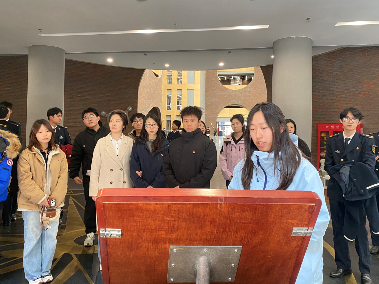 随后,全体党员一同参观了大连海事大学航海教育博物馆和新图书馆。在博物馆内,大家通过丰富的展品深入了解了中国航海事业的辉煌历程与“海洋强国”战略的实践。在新图书馆,党员们切身感受了现代化学习氛围与浓厚校园文化的融合。此次实地参观加深了全体党员对航海文化的认识,同时切实增强了同学们服务国家战略的责任感与使命感。