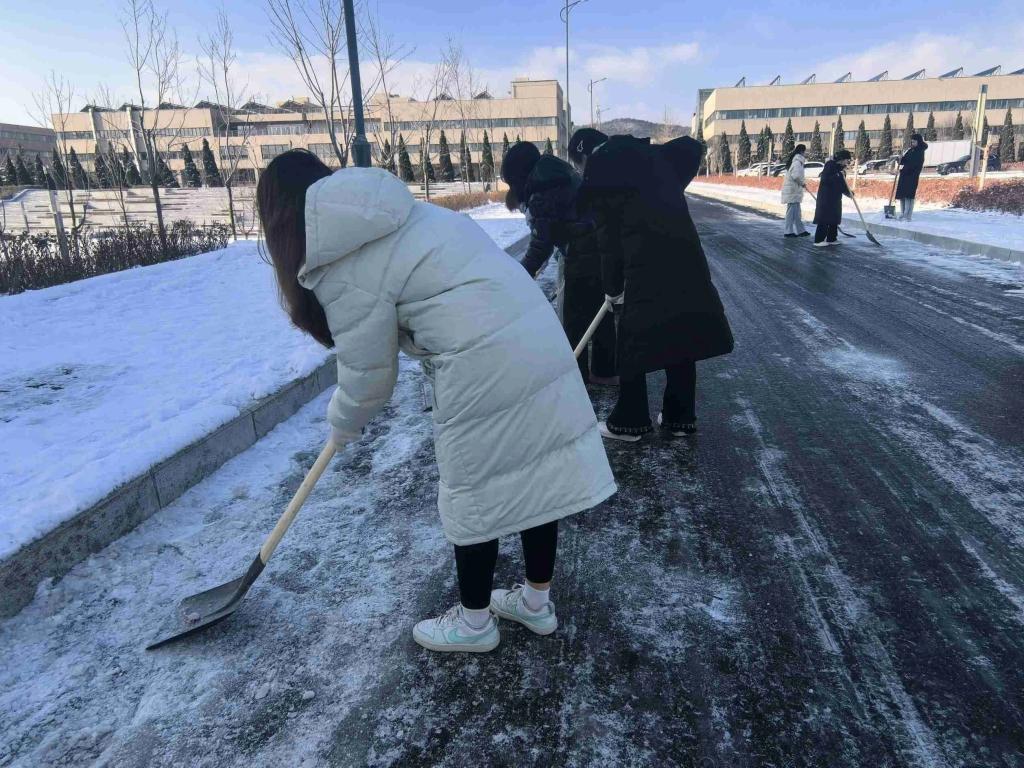 即使寒风裹着雪粒扑面,同学们扫雪的热情却依旧高涨。经过同学们的努力协作,校园主要道路的积雪被清理干净,路面重新通畅,为师生出行提供了安全保障。