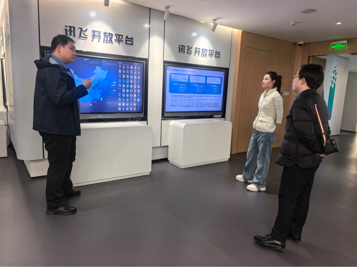 英语学院的两位老师在负责对接政府合作的负责人耿铭阳以及负责对接高校事物的负责人周子玉的带领下,走访了解了科大讯飞的技术服务与开放平台,详细了解了企业发展现状与人才需求方向。双方围绕人才联合培养等核心议题探讨了合作可能性,并在友好的氛围中交换了意见,为后续进一步推进合作奠定了基础。