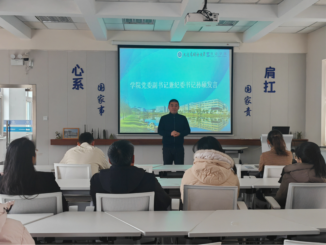 为了加强家校沟通,促进家长对学生在校成长发展的全面了解,1月14日,英语学院于大连外国语大学中山校区召开了2025-2026学年家长会。会议上,英语学院党委副书记兼纪委书记孙硕、英语学院团委书记兼2023级辅导员曲镜达、研究生辅导员黄新智、2022级辅导员李延奇、2023级辅导员吴曼、2025级辅导员达尼亚尔江·亚力坤江出席本次会议,全体与会家长认真聆听了各项政策解读与学业发展指导。