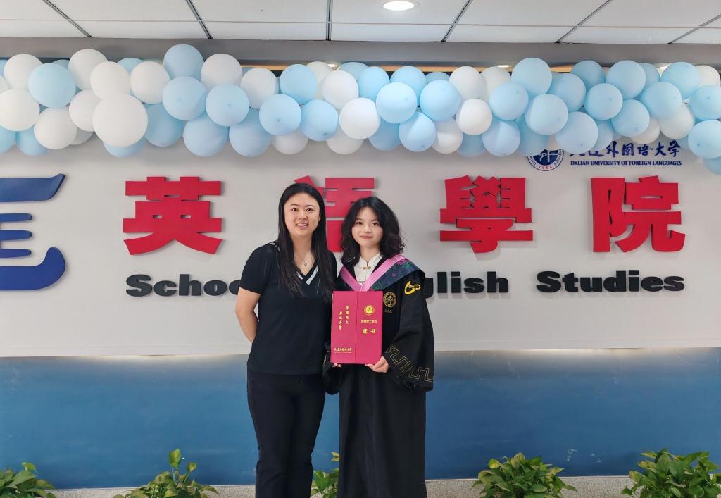 在校期间,她曾荣获国家奖学金、校综合一等奖学金,获评辽宁省普通高等学校优秀毕业生、大学生标兵、优良学风先进个人等荣誉称号。此外,她还代表大连外国语大学参加第四届文学伦理学批评跨学科研究大学生领航论坛,围绕《成年礼》中的后人类伦理展开深入探讨。每一份荣誉都非偶然,既是她日复一日深耕学术的坚持,也是她认真对待每一次科研探索、从不敷衍的最好回报。