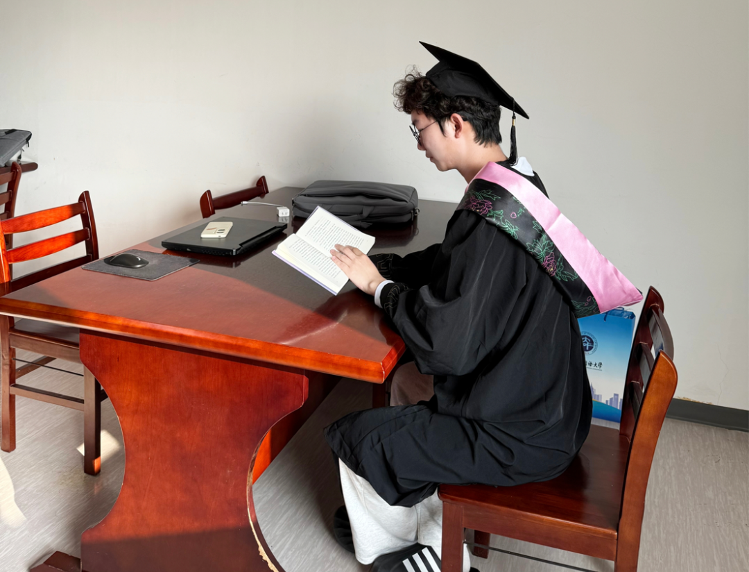 在校期间,大二时他曾担任阅读写作俱乐部负责人,大三、大四两年,他凭借扎实的专业实力,连续进入外研社综合能力国赛。每一份荣誉都并非偶然,既是潜心专注的成果,也是持之以恒的回报。