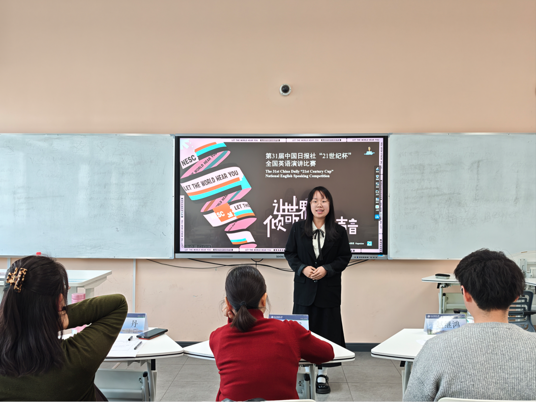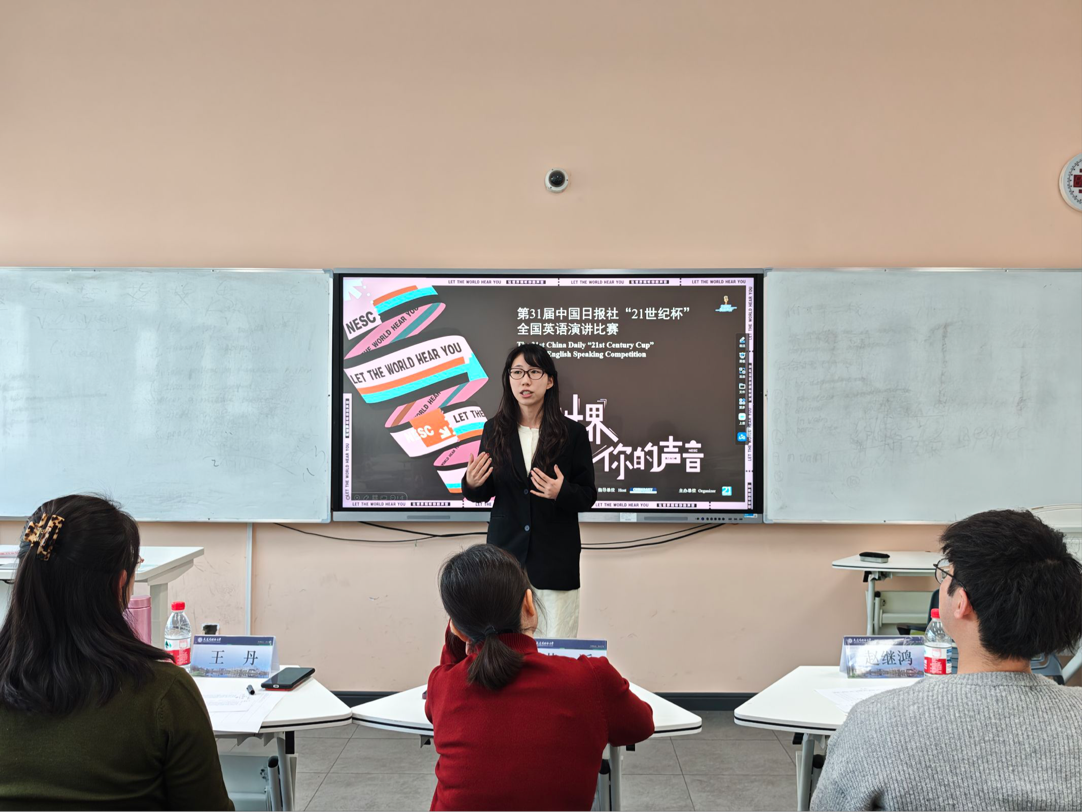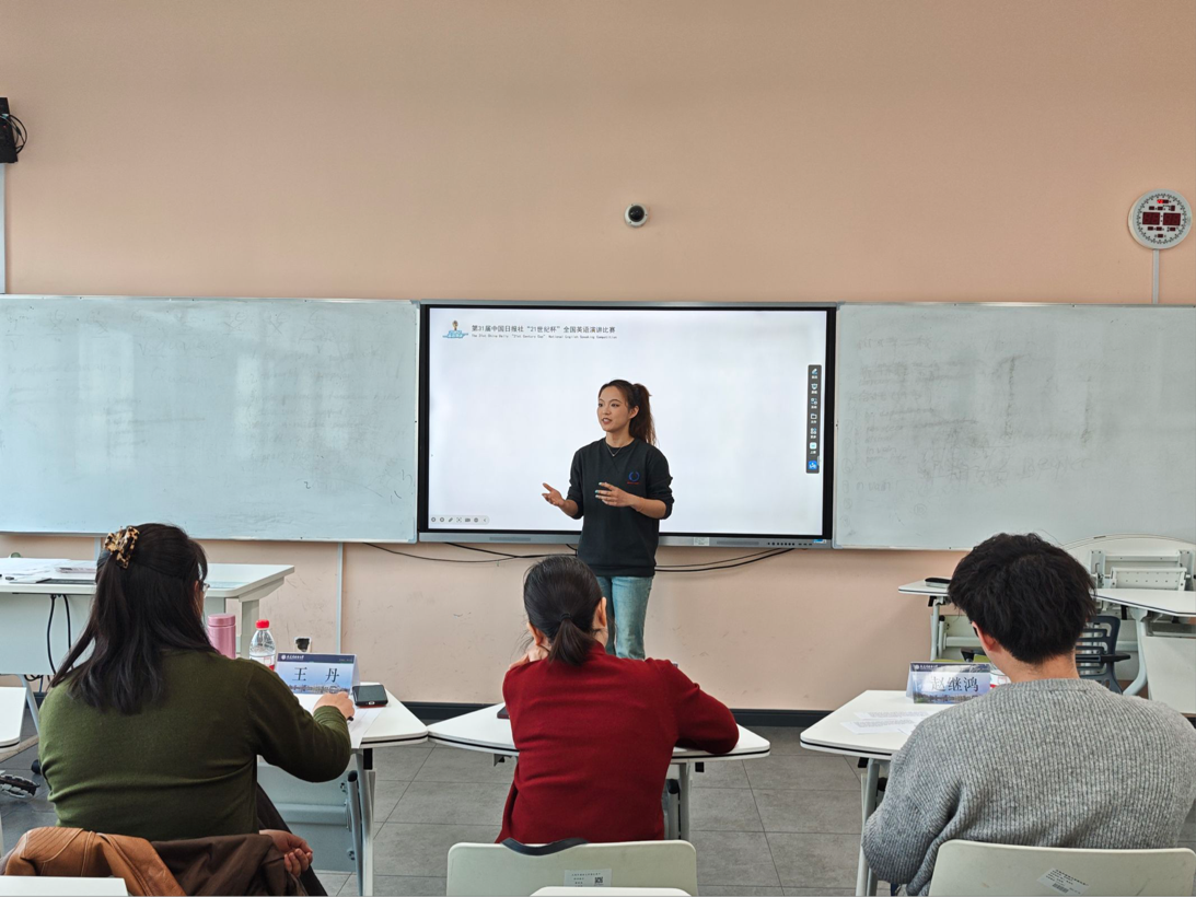 为全面提升我院学生英语综合应用水平,扎实培养具备跨文化沟通素养的外语人才,4月15日,英语学院“21世纪杯”全国英语演讲比赛选拔赛于励业楼顺利举行。英语学院教师黄滔、王丹、赵继鸿担任比赛评委,学院各年级学生踊跃参与。