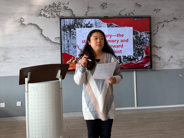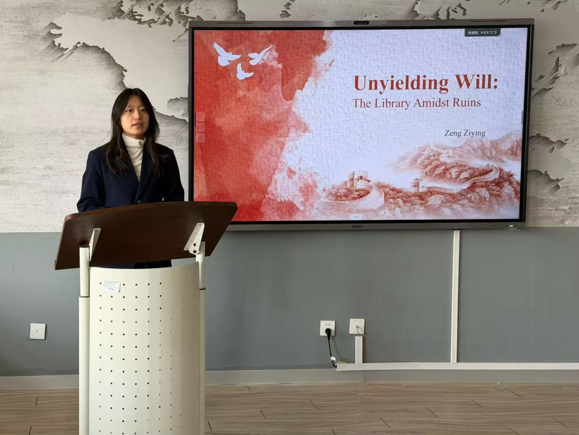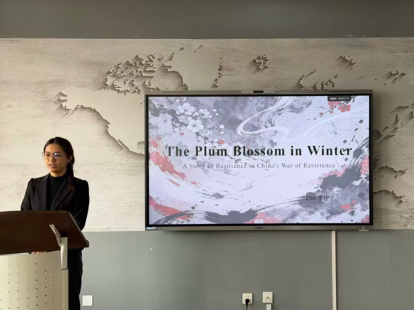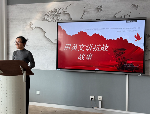 2025年是中国人民抗日战争暨世界反法西斯战争胜利80周年。为引导学子铭记历史、弘扬伟大抗战精神,英语学院团委携手校级社团党史讲学社,精心开展了以“烽火铸魂八十载,薪火相传启新程”为主题的用英文讲述抗战故事比赛。12月2日,决赛在励业楼爱尔兰研究中心顺利举办。本次决赛特邀英语学院团委书记曲镜达、教师韩秀、马克思主义学院教师赵晨旭担任评委。