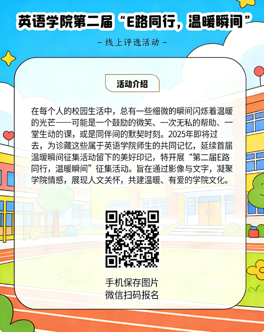 一张2025年在英语学院范围内拍摄的让你感到温暖的瞬间;一段20-30字的简短说明,阐述投稿照片背后的故事或感受。