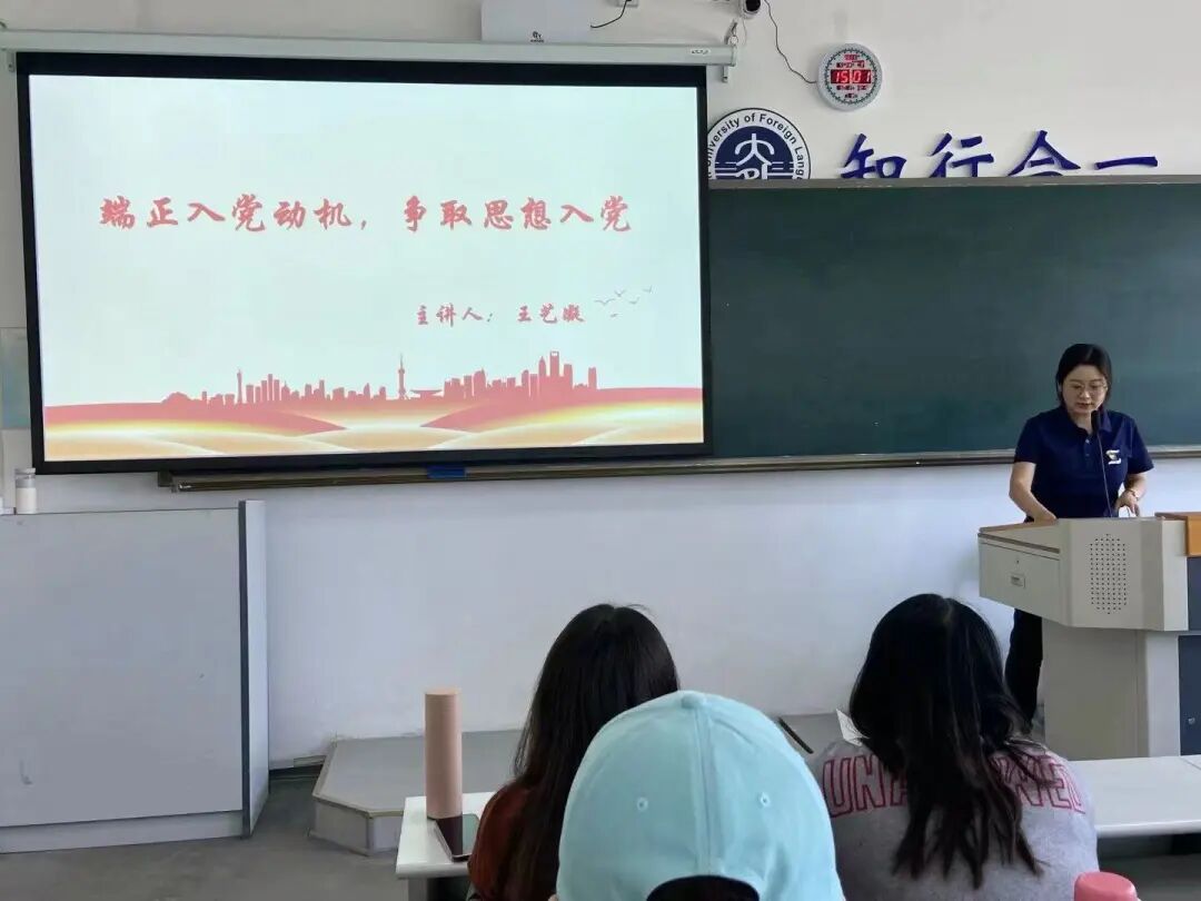 在第四讲的课堂上,英语学院本科生第二党支部书记王艺凝为入党积极分子们带来了《端正入党动机,争取思想入党》专题课程。王艺凝老师首先向同学们讲解了发展党员流程,剖析了当代大学生入党动机。她强调,树立正确入党动机是思想入党的前提,要坚持全心全意为人民服务的思想,加强对党的基本知识、科学文化知识的学习。王艺凝老师表示,希望同学们能在实践中不断修正入党动机,践行共产主义理想,早日成为知行合一的共产党员。