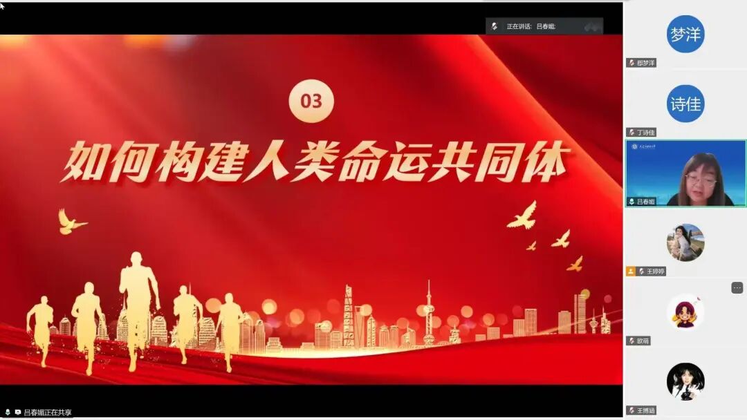 在第九讲的课堂上,英语学院院长吕春媚为入党积极分子们带来了《人类命运共同体思想中的中国智慧》专题课程,系统讲授了人类命运共同体理念的历史脉络、理论内涵与实践价值。吕院长指出,人类命运共同体是中国外交的核心理念,已深度融入党和国家发展蓝图。她强调,人类命运共同体内涵深厚,既根植于中华优秀传统文化。随后,吕院长通过喀喇昆仑公路等案例,生动诠释中国以实际行动推动理念落地的担当。课程末尾,吕院长鼓励同学们把个人理想融入国家发展大局,在服务国家外交战略、促进文明互鉴中锤炼本领、增长才干,为推动构建人类命运共同体注入蓬勃的青春力量。