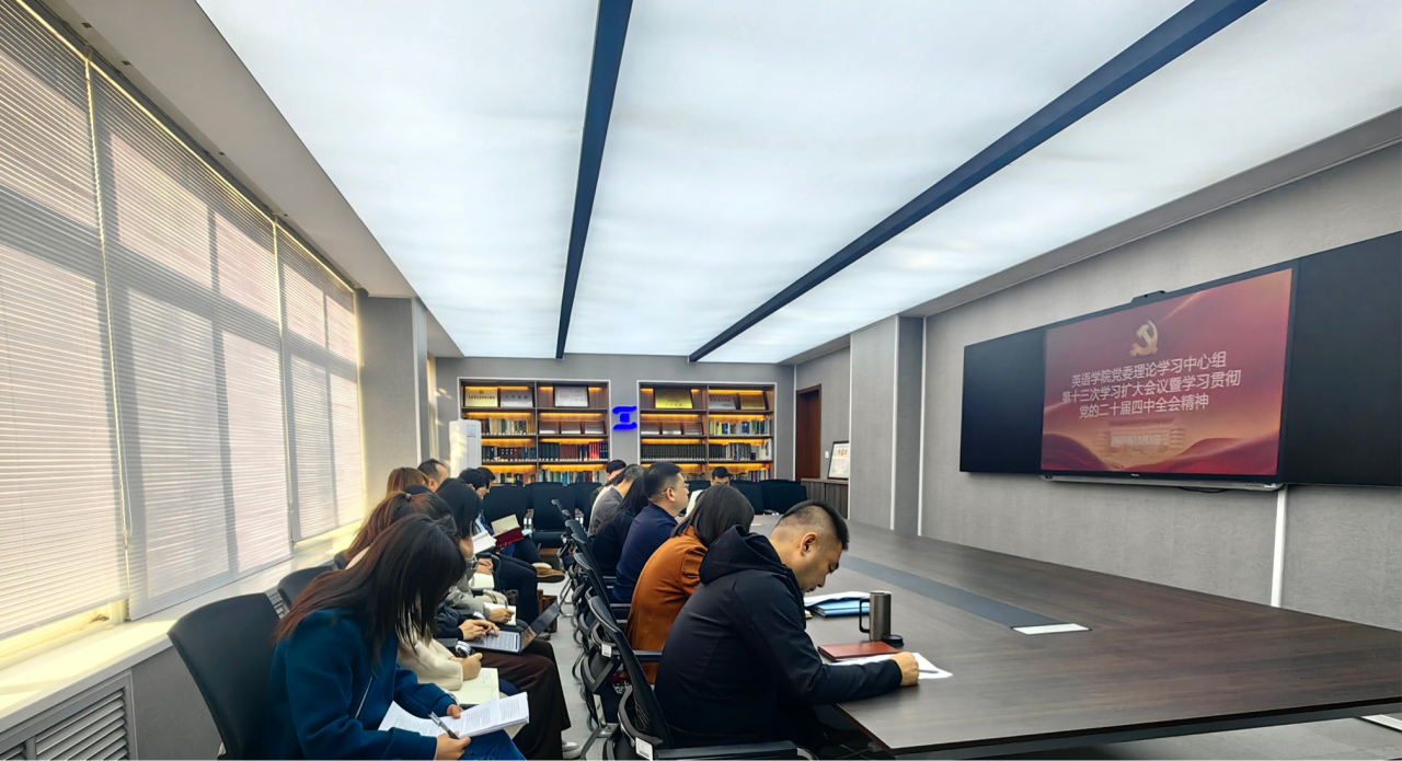 11月3日上午,英语学院召开党委理论学习中心组扩大会议,围绕党的二十届四中全会精神和学校“十五五”规划调研工作会议精神开展学习。党委理论学习中心组成员、党委委员、组织员、各支部书记、纪委委员和辅导员参加会议。学院党委书记梁若冰主持会议并讲话。