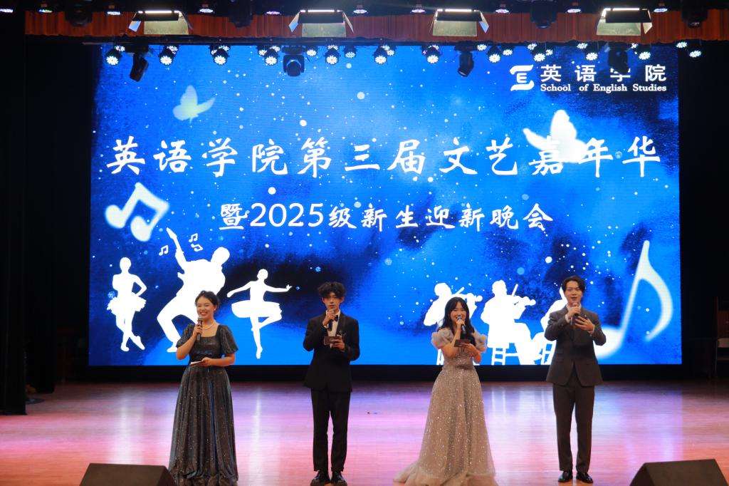 青春气贯长虹,青年神采飞扬。本次英语学院第三届文艺嘉年华暨2025级新生迎新晚会,不仅是一场视听盛宴,更是一场文化艺术的交融和熏陶,生动展现了英院学子的艺术才情与思想活力。希望英院学子们以此为新的起点,始终保持对生活的敏锐和对艺术的感知,在未来的人生舞台上大放异彩,在青春旅途中留下浓墨重彩的一笔。